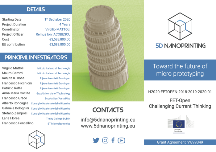 5D NanoPrinting project aims to set a new paradigm in the 3D printing technology of micro and nano machines.
